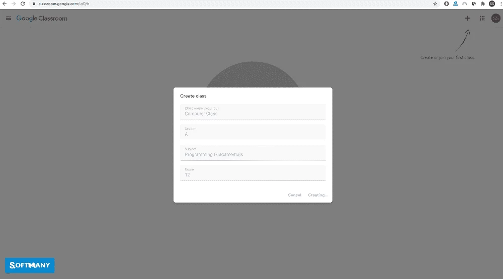 Vous pouvez désormais créer une classe en cliquant sur le bouton +, puis les classes suivantes de la même manière. Les classes créées seront affichées sur l'écran d'accueil. Vous devez ajouter des noms, des sections et des matières pour identifier les élèves.